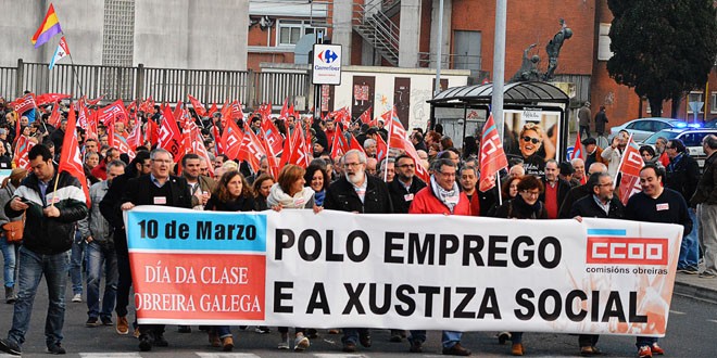 Después de las ofrendas florales ante el monumento al “10 de marzal” en la zona de Recimil y dentro de las celebraciones del Día de la clase Obrera Gallega, durante la tarde de este martes, día 10, se organizaron dos manifestaciones convocadas la primera de ellas por Comisiones Obreras y la segunda por la CIG. demostrando una vez más que no existe unidad sindical en cuanto a convocatorias de este tipo.