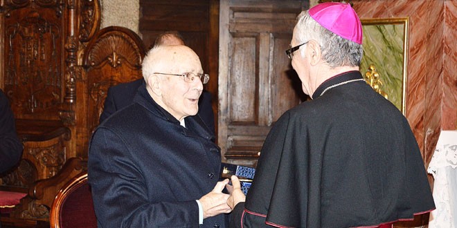 Seguidamente se procedió a entregarle la medalla de oro de la junta de Cofradías a Alfredo Martín Lorenzo en reconocimiento a su destacada labor a favor de la Semana Santa en Ferrol.