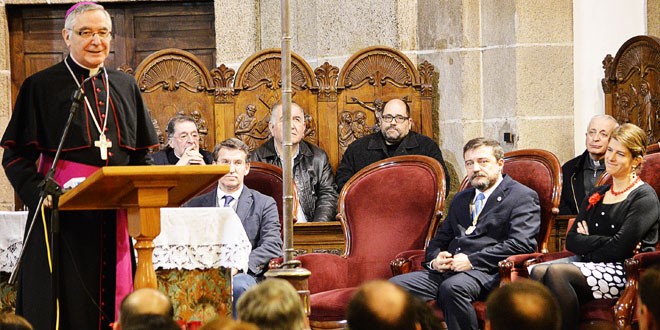 El obispo felicitó a la pregonera «y los aplausos han demostrado que no tiene que venir gente de fuera para pregonar nuestra Semana Santa, ha sido un pregón maravilloso, donde se han dado cita al mismo tiempo unos conocimientos muy riguroso de la historia, de los datos bíblicos y el amor a Ferrol y a su Semana Santa».