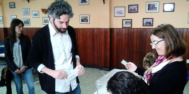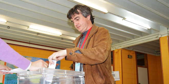 A las 12 de la mañana el candidato por Marea Ártabra Chema Hernández depositó su voto en una de las mesas instaladas en el Colegio de Esteiro.