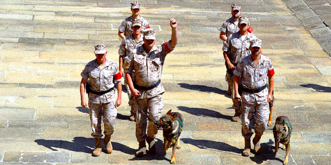 Tras despedir a la Bandera Nacional con los honores de ordenanza finalizaron los actos con una parada militar y despedida a la Bandera Coronela mientras la Banda del Tercio interpretaba una marcha granadera.