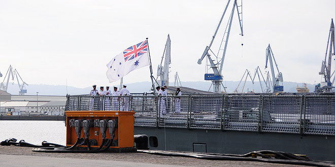Tal y como estaba previsto, sobre las nueve de la mañana de este viernes, día 12, atracó en el muelle número cuatro del Arsenal Militar, procedente del puerto francés de Brest la fragata de la Marina Australiana «HMAS Anzac» que al mando de la capitana de Fragata Belinda Wood permanecerá en Ferrol durante cuatro días dentro de la serie de visitas que viene efectuando por diversos países desde su salida de Sidney en el pasado mes de marzo. Subió a bordo el agregado naval de la embajada de Australia en España el capitán de navío Raymond Leggatt.