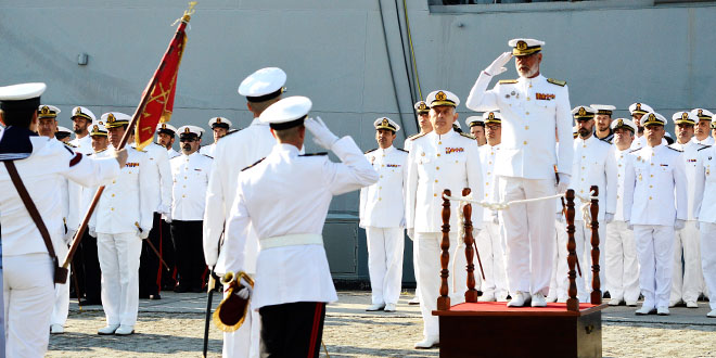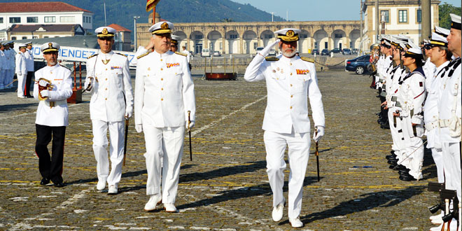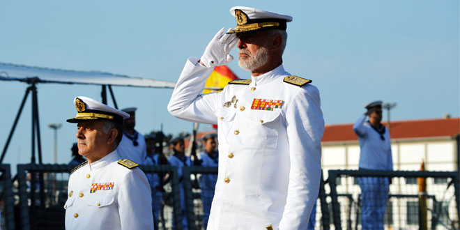 Posteriormente el almirante Bolibar pasó revista a las fuerzas, saludó a los comandantes de buques y representaciones de la Flota y de Infantería de Marina, y por último se efectuó un desfile de la formación.