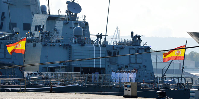 El acto militar de recibimiento y honores tuvo lugar en el Arsenal Militar de Ferrol. A su llegada fue recibido por el contralmirante Jefe del Grupo de Acción Naval-1, Antonio Pintos Pintos, acompañado del Capitán de Navío Ignacio Frutos Ruiz, Comandante de las unidades de la Fuerza de Acción Marítima y del Coronel Jefe del Tercio del Norte de Infantería de Marina Alejandro Ferreira Velón, así como por los comandantes de las unidades navales con base en Ferrol.