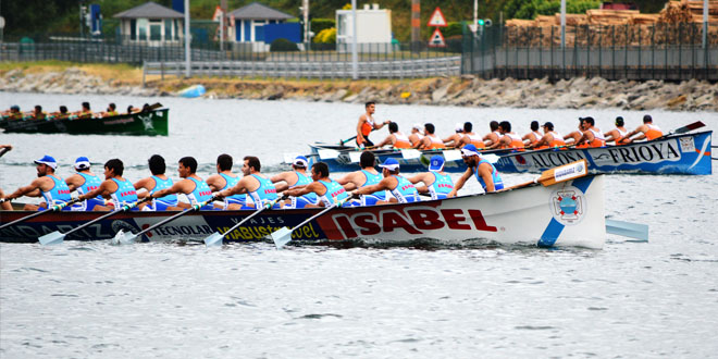XII Bandeira Cidade de Ferrol (Liga B), donde los equipos Mecos (ganador de la prueba de este sábado), Bueu, Villa de Cangas, Cesantes, Mera, Castropol y Rianxo se dieron cita en una prueba donde tuvieron que recorrer con sus embarcaciones, impulsadas por remo, una distancia de 3 millas náuticas, 5.556 metros.