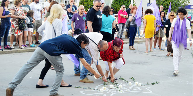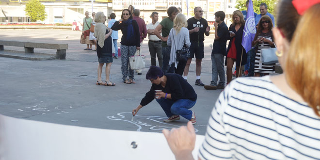 Tras esbozar en el suelo el característico perfil de un cuerpo asesinado, se procedió a la lectura de un manifiesto para declarar el compromiso contra la violencia de género y rendir así homenaje a Beatriz Rodríguez Mariño. Tras las emotivas palabras, los asistentes, entre ellos Jorge Suárez, procedieron a depositar claveles blancos sobre la ficticia escena del crimen, clausurando la concentración tras los aplausos de los allí presentes.
