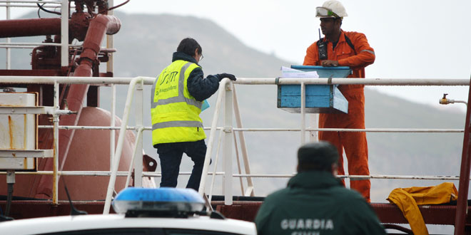 En la zona de los muelles se hizo notar una fuerte vigilancia por parte de equipos de la Guardia Civil, Policía nacional y Policía Portuaria no permitiendo la entrada ni salida del buque, solamente a los especialistas de sanidad Exterior. Se encontraban asimismo en los muelles el presidente de la Autoridad Portuaria, José Manuel Vilariño y el jefe del departamento comercial y de desarrollo, Julio Hernández.