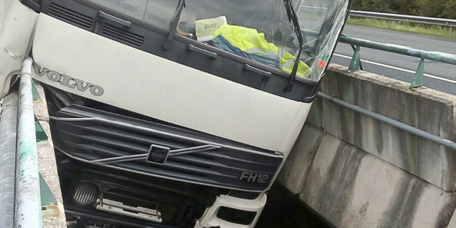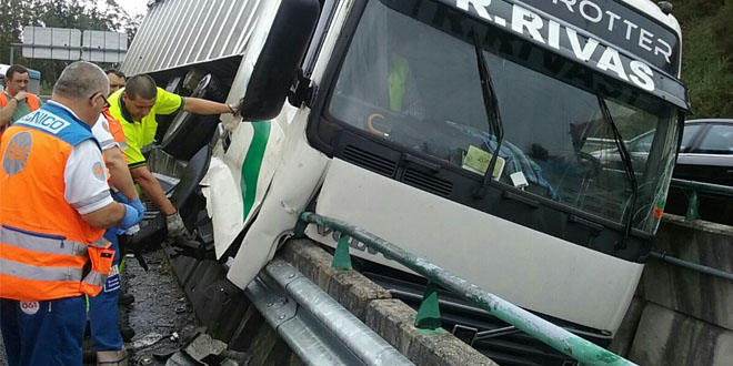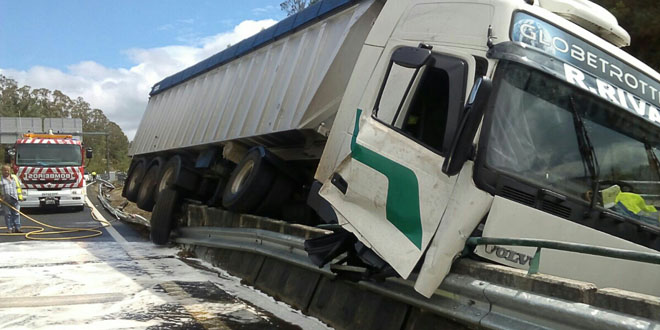 Pudieron comprobar que el camión tráiler, que circulaba vacío desde As Pontes en dirección al Puerto Exterior de Ferrol se había ido de la carretera colisionando contra la mediana y quedando encastrado con la otra mediana del vial que va dirección a Vilalba, tan justo que milagrosamente y por la distancia de un vial a otro no se cayó al vacío sobre un viaducto de la carretera "vella"de Ortigueira
