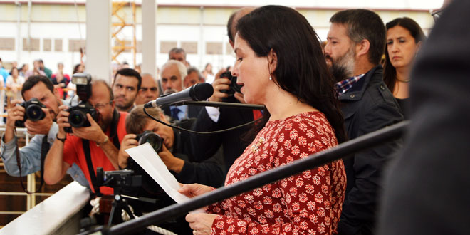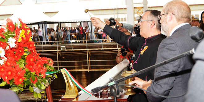 La madrina pronunció unas palabras pidiendo a Dios un buen destino para el buque, para su tripulación y gentes que albergue, para los trabajadores de Navantia, sus familias y para Galicia, España y México finalizando con «buena mar y mejores tiempos».