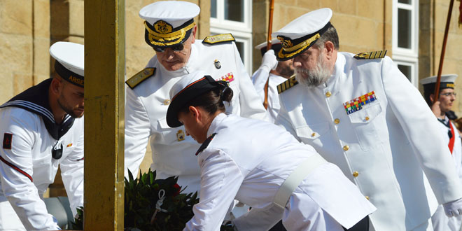 En el acto, que fue presidido por el Almirante Jefe del Arsenal Militar de Ferrol, vicealmirante Francisco Javier Romero Caramelo, fueron homenajeados 20 oficiales. Acompañaban al almirante Romero Caramelo; el Comandante-director de la Escuela de Especialidades “Antonio de Escaño” CN Manuel Romasanta Pavón; el coronel del Tercio del Norte de Infantería de Marina, Alejandro Enrique Ferreira Velón; el Vicario Castrense José Luís Valverde; comandantes de buques y dependencias; almirante y generales en la reserva, y el Ayudante Mayor del Arsenal Militar, Capitán de Fragata Pedro Viñas Pampillo, así como numerosas representaciones de la Armada, jefes, oficiales, suboficiales y marinería.