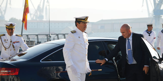 Eran las once de la mañana cuando hizo acto de presencia el Almirante de la flota que fue recibido por el Contralmirante Jefe del Grupo de Acción naval, Antonio Pintos Pintos; el Coronel Jefe del Tercio del Norte de Infantería de Marina, Alejandro Ferreira Velón y el Comandante de las Unidades de la Fuerza de Acción Marítima, Capitán de Navío, Fernando Luis Álvarez Blanco.