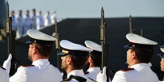 En el muelle del Arsenal se encontraban atracadas las fragatas «Méndez Núñez» y «Cristobal Colón”» cuyas dotaciones formadas también participaron en el acto de rendición de honores.