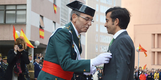 Seguidamente se procedió a la imposición de distintas condecoraciones, entre ellas la Cruz de Plata de la Orden del Mérito de la Guardia Civil al general Francisco Javier Abajo y al conselleiro de Política Social y ex alcalde de Ferrol, José Manuel Rey Varela; y las Cruces con distintivo blanco, de la Orden del Mérito a la Guardia Civil a un grupo de guardia civiles, muchos de ellos participantes en recientes operaciones con resultado exitoso; y a varios militares y civiles, entre ellos al Coronel Jefe del Tercio del Norte de Infantería de Marina, Alejandro Enrique Ferreira Velón; y al Director de Galicia Ártabra, Pedro Emilio Sanz Sánchez.