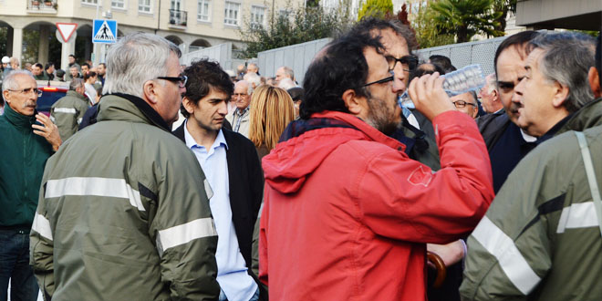 En la concentración se encontraban diversos dirigentes sindicales y municipales, entre ellos el alcalde de la ciudad, Jorge Suárez; el edil de cultura, Suso Basterrechea y el concejal del NBG en Narón, Pablo Villamar.