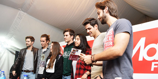 El grupo musical Dvicio, en gira promocional de su último trabajo Justo ahora estuvo este martes en PARQUE FERROL invitado por Media Markt en donde los cinco integrantes de la banda atendieron a un buen número de seguidores que no quisieron perder la ocasión de llevarse como recuerdo la firma del grupo madrileño.