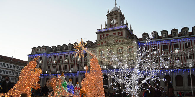 ¡Xa estamos no Nadal! se oía a muchos niños y niñas en el acto del encendido del alumbrado especial realizado a las seis de la tarde en la plaza de España, ante un gigantesco árbol (17 metros de altura) y en el que tuvieron una actuación especial las deportistas de gimnasia rítmica del Club Esquío que acaban de obtener la medalla de bronce en los campeonatos de España.