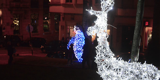 Mucha animación en esta plaza como también en la de Armas en donde además de la iluminación de la fachada y en los árboles que circundan la plaza no faltó, como en años anteriores, el «belén» luminoso.