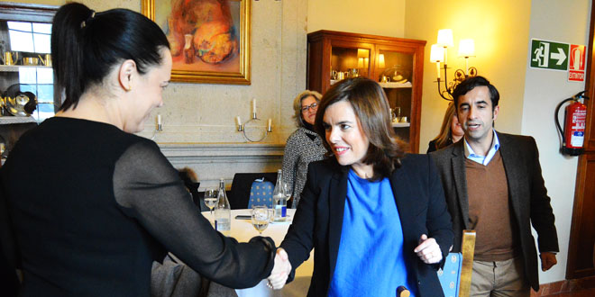 El Parador de Turismo de Ferrol acogió esta mañana la visita de la vicepresidenta del Gobierno de España, Soraya Sáenz de Santamaría, donde mantuvo acompañada del conselleiro de Política Social, José Manuel Rey Varela, y el candidato a congresista, Juan Juncal, un encuentro con entidades sociales de la ciudad portuaria.
