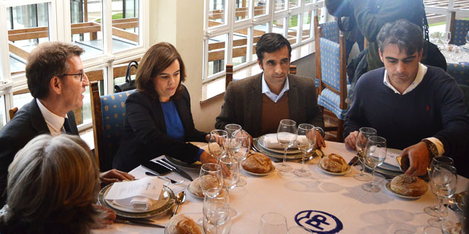 Posteriormente, miembros de la cúpula del Partido Popular de Ferrol y de toda la comarca de Ferrolterra acompañaron a la vicepresidenta al comedor del Parador para realizar una comida a la que se sumó más adelante el presidente de la Xunta de Galicia, Alberto Núñez Feijóo.