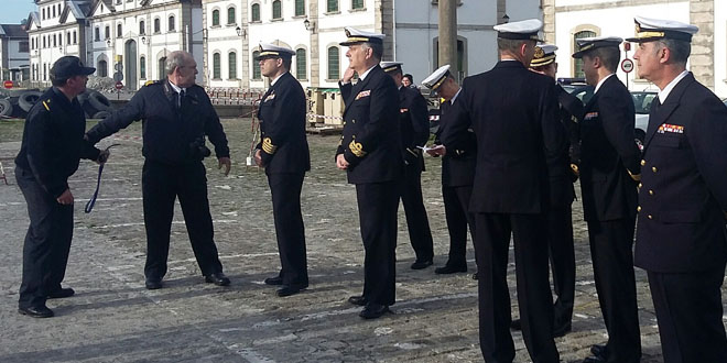 En los muelles se encontraban el Jefe del Grupo de Acción Naval 1, contralmirante Antonio Pintos Pinto; el Comandante de la 31 escuadrilla de Escoltas, capitán de navío Rubén Rodríguez Peña y otros mandos de buques.