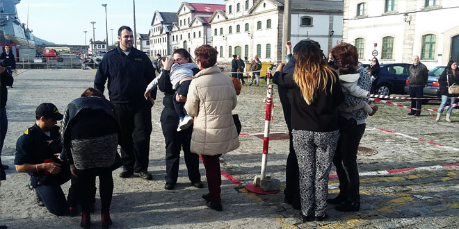 Posteriormente se permitió a la tripulación bajar a tierra para saludar a sus familias.