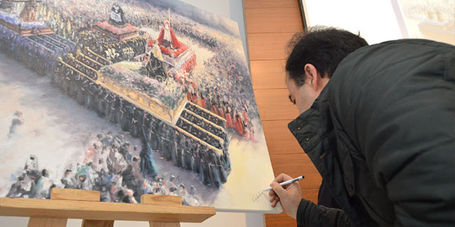 Elisardo de la Cruz fue el encargado de explicar todo lo concerniente a la imagen corporativa de los 400 años y seguidamente Manuel Carballeira Rivas explicó el significado de su pintura que figurará en los carteles, portada de la revista y otras publicaciones de la Semana Santa 2016 «Busqué un referente histórico tanto religioso como social-popular y que mejor que el Santo Encontro” ».