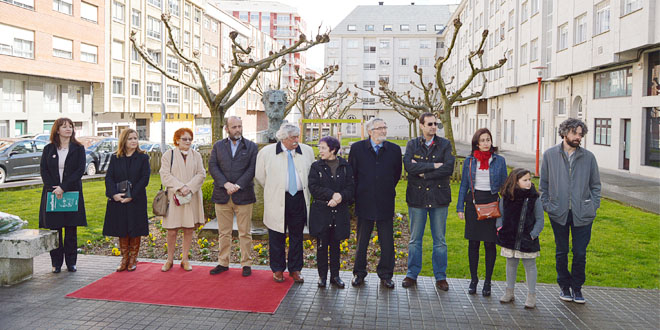 Ante el monumento, obra de Xosé Cid, se encontraban una representación del concello integrada por el primer teniente alcalde y edil de Urbanismo, Guillermo Evia, y los portavoces de los grupos municipales, Natividad González, del PSdG-PSOE, Ivan Rivas, del BNG y Juan Fernández de IF, así como los también ediles Rosa Martínez Beceiro (PP) y Ramón Veloso (PSdG-PSOE). Estaban también la viuda del pintor, Julia y su hija Elena, asi como otros familiares. El presidente de la Asociación de Vecinos, Rafael Leira Castiñeira y varios miembros de la junta directiva, asi como un buen grupo de vecinos y gentes de la Cultura, entre ellos Anxo Viveiro y José Gascón.