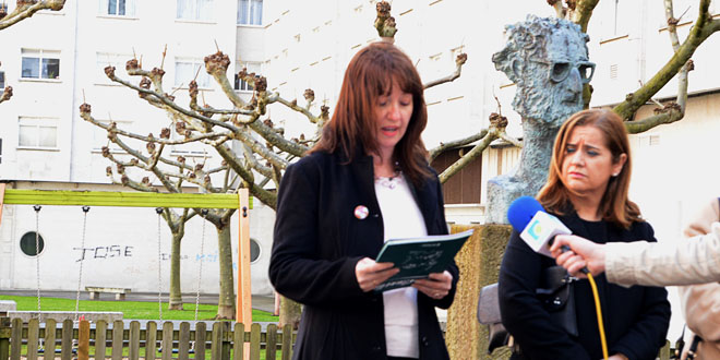 A continuación la escritora mugardesa, vecina ferrolana Teresa Cameselle recordó que ya son 14 años los que se lleva sin la presencia física de Ricardo Segura. “Se dice que el artista nace o se hace,..pues Ricardo ya nació siendo artista y en su larga vida nunca defraudó con su trabajo y labor.”. Ofreció un breve resumen de la vida y obra de Segura finalizando con la frase de García Márquez “La muerte no llega con la vejez sino con el olvido” por lo que debemos mantener siempre vivo el recuerdo a Ricardo Segura.