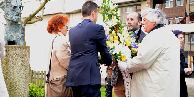 A las doce de la mañana de este sábado día 22, se dieron cita en la confluencia de las calles Ministro Patiño y Pintor Pérez Villaamil, en la zona del Ensanche, representaciones políticas, vecinales, del mundo de la cultura y familiares del recordado artista.