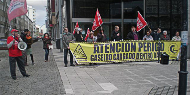 La protesta se efectuó por la entrada en la ría de un nuevo gasero, el “Trinity Arrow” de bandera Panameña con gas natural licuado para Reganosa.