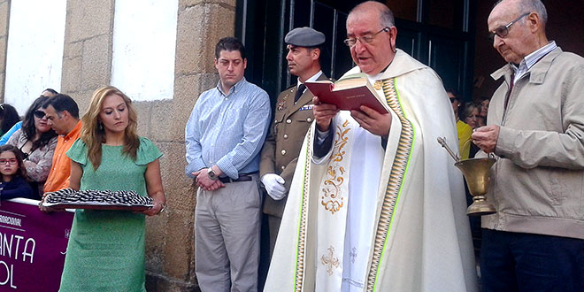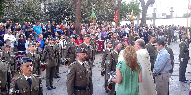 En las escalinatas de la iglesia junto al párroco, Xosé Francisco Delgado, se situaron el Teniente Coronel de la Brilat, Pedro Polo; el comisario diocesano, Ignacio López del Rio, y miembros de la Hermandad. Entre el numeroso público se encontraban el diputado provincial, Miguel de Santiago y el secretario de la Coordinadora de Cofradías, Fernando Iguacel .