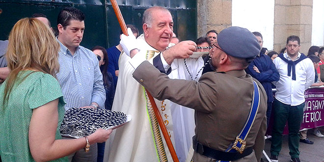 El párroco y capellán procedió a la bendición de las medallas de la Cofradía que serían impuestas a todos los miembros presentes de la Brilat y al Teniente Coronel Polo. Asimismo se rezó una oración por los militares de la Brilat caidos en defensa de la Patria.