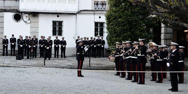 La Armada celebró este jueves, día 29, ante el edificio del Palacio de Capitanía General, en la zona de los jardines de Herrera, a las 22,03 minutos el arriado solemne de Bandera Nacional.