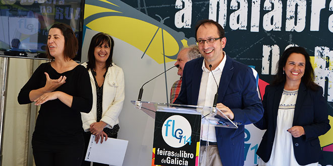 El responsable de Cultura estuvo acompañado por el vicepresidente de la Federación de Libreiros de Galicia, Xosé Antón Pedreira; y por la concejala de Educación y Deportes de Ferrol, Susana Martínez Galdós, en un acto que contó con el acompañamiento musical del Real Coro “Toxos e Froles” y que también incluyó la visita de las autoridades a la exposición 'Carvalho Calero. de Ferrol para o mundo' así como a los stands de la feria.