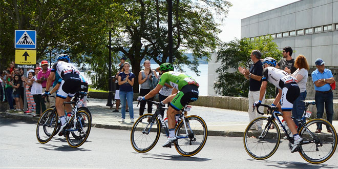Desde el inicio velocidad y ataques continuos en el pelotón. Muchos equipos estaban interesados en colocar a corredores en la fuga de la jornada. Cinco corredores logran el objetivo de la fuga en el concello de Valdoviño, Rohan Dennis (42), Bob Jungels (214), Lluis Más Bonet (57), Elia Favilli (4) y Daniel Teklehaimanot (166), que llegarían con tres minutos de diferencia con el pelotón a su paso por Ferrol con mucho público a los dos costados.