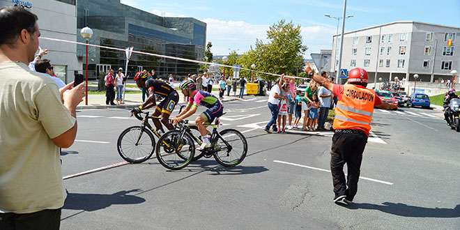 Gracias a la colaboración del público asistente y miembros de la organización se pudieron primero levantar y luego romper las cintas que cerraban el inicio de la rotonda, lográndose que posteriormente el paso del pelotón fuese normal.