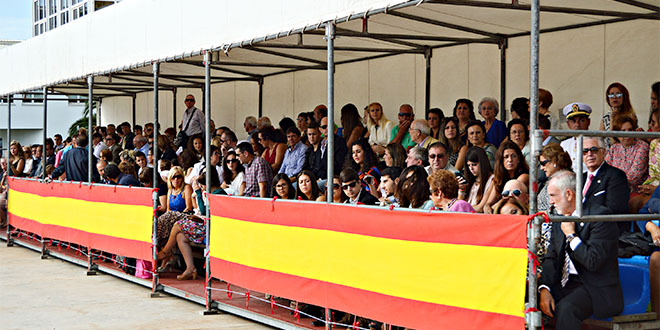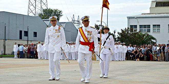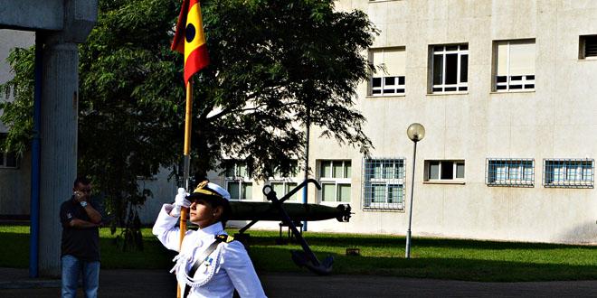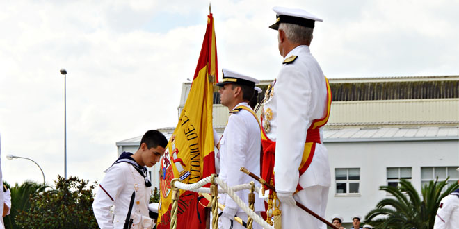 A las doce menos diez de la mañana se incorporó a la formación de nuevos marinos y otros miembros de la Escuela “Antonio de Escaño" y ESENGRA , acompañados por la banda de música del Tercio de Norte de Infantería de Marina, la Bandera Nacional a la que se le rindieron los honores de ordenanza.