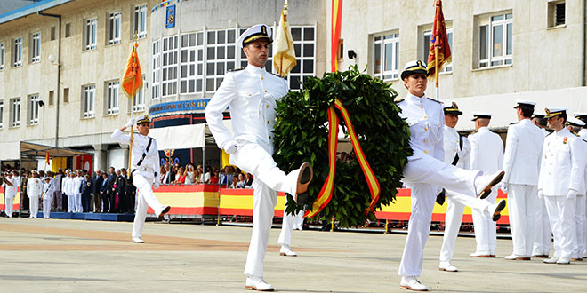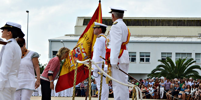 Tras felicitar a los marineros “que acaban de expresar solemnemente su juramento o promesa besando nuestra Bandera” señaló que “La Armada cuenta hoy con unos medios tecnológicamente muy avanzados que requieren, para su correcta utilización y mantenimiento, hombres y mujeres con alta preparación y sincero afán de servicio. Una Armada altamente profesional, de reconocido prestigio, tanto en el ámbito nacional como el internacional, y que siempre ha mantenido como objetivo fundamental la búsqueda de la excelencia. Por ello, las Escuelas de la Armada en Ferrol nacieron con la firme vocación de proporcionar a sus alumnos una formación de la máxima calidad y que abarcase los últimos avances tecnológicos”.