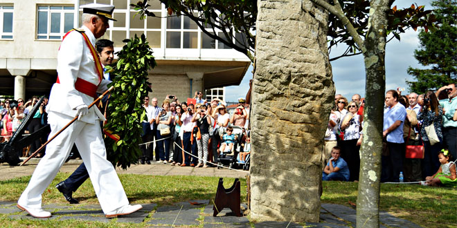 El contralmirante Marcial Gamboa y el alcalde de la ciudad, José Manuel Rey depositaron una corona de laurel ante una cruz en honra a los Caídos, mientras los marinos cantaban “la muerte no es el final…” Cuando la pena nos alcanza por el hermano perdido, cuando el adiós dolorido busca en la Fe su esperanza. En Tu palabra confiamos con la certeza que Tú ya le has devuelto a la vida, ya le has llevado a la luz. Ya le has devuelto a la vida, ya le has llevado a la luz”…. El vicario castrense rezó una oración por los fallecidos y en esos momentos se escuchó una descarga de fusilería en honor a los miembros fallecidos de la Armada.