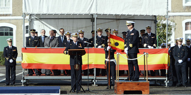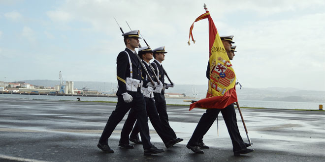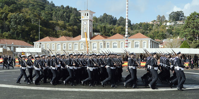 A las 12,20 se incorporó la Bandera Nacional a la formación integrada por un Batallón de alumnos con la Unidad de Música del Tercio del Norte de Infantería de marina, rindiéndole los honores de ordenanza.