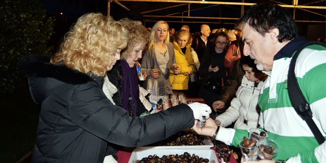 A continuación, tras encenderse el alumbrado del abeto se procedió al reparto de unos noventa kilos de castañas asadas, leche y vino entre todos los asistentes, por gentileza de la Asociación de Vecinos de Piñeiros, entre el sonar de villancisos navideños.