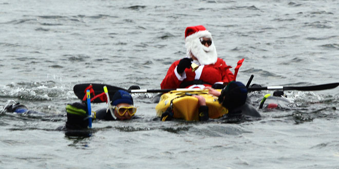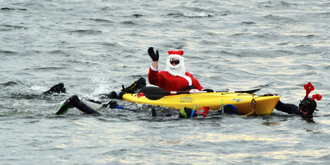 Papa Noel venía acompañado por un grupo de buceadores pertenecientes a la Asociación Medio Ambiental y Sanitaria «Los Delfines».