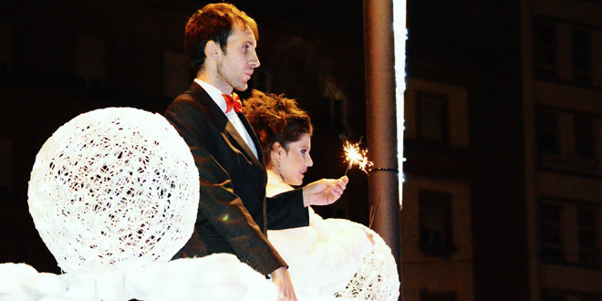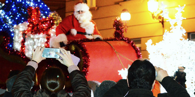 La cabalgata en la que figuraban tres carrozas, la de Navidad, un tren con regalos y la que transportaba a Papá Noel, acompañadas por la banda de la Amargura y las figuras de Disney, salió de la zona de la carretera de Catabois y después de recorrer diversas calles del centro de la ciudad llegó a la plaza de Armas, sobre las ocho y cuarto de la tarde, que estaba abarrotada de personas y en donde el alcalde y miembros de la Corporación dieron la bienvenida al personaje navideño.