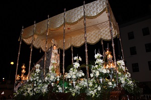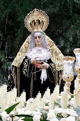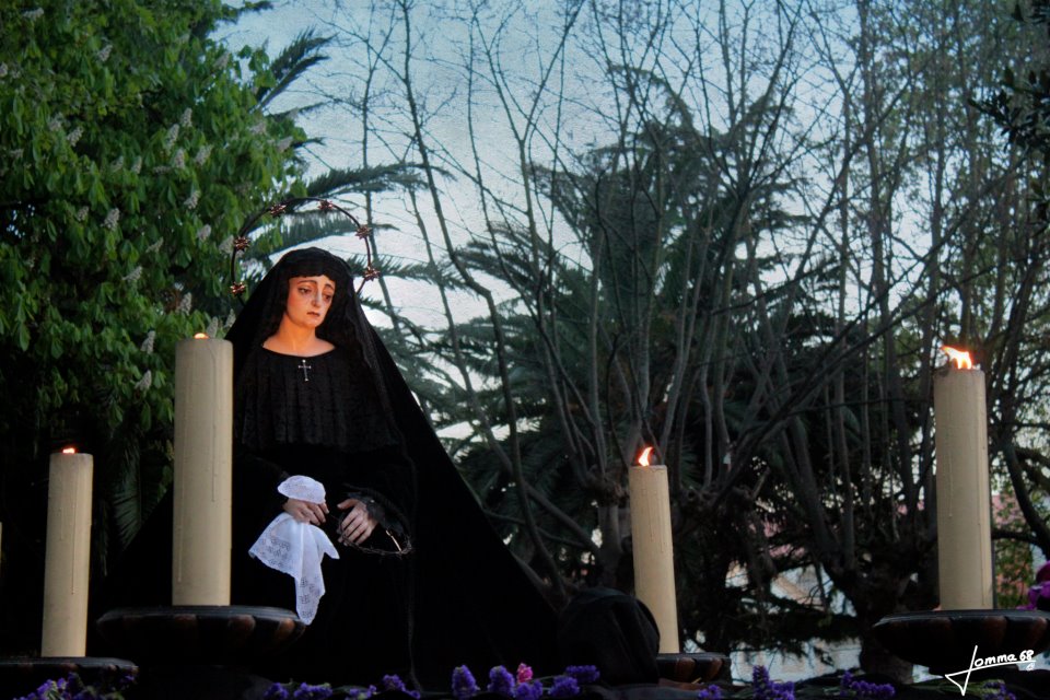 A las ocho y media de la tarde del Sábado Santo salía de su capilla la imagen de la Virgen de las Angustias en la procesión de la Caridad y el Silencio. Un contraste en la imagen, del cierto lujo de su hermoso manto y corona del Jueves Santo, al luto solemne en la tarde-noche del sábado y sobre un …