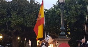 Solemne arriado de Bandera ante el Palacio de Capitanía, en los jardines de Herrera