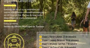 O Concello de Cabanas convida á cidadanía a gañar a Compostela realizando o Camiño Inglés en seis etapas. Unha ruta na que poden participar nenos e maiores, os primeiros acompañados dun adulto, e que ten ó municipio de Cabanas como punto de referencia para saídas e chegadas. Será precisamente dende a Oficina Municipal de Turismo cabanesa, na contorna do parque …