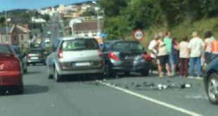 Según informa el CAE 112 una colisión por alcance de cuatro vehículos dejó un balance de cinco personas heridas ,en el kilómetro 10 de la carretera AC-566 (Ferrol-Viveiro) en las inmediaciones de la rotonda "de Robles" en Valdoviño. Fue una persona particular la que llamó al 112 Galicia a las 16:50 horas para alertar del siniestro en el que se …