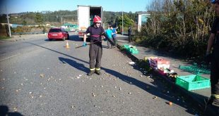 A las cinco menos cuarto de la tarde de este viernes a un camión con remolque perteneciente a la cadena de supermercados DIA al llegar a la glorieta del Polígono de Vilar do Colo, cuando circulaba en dirección a Fene, se le abrió la puerta trasera del remolque "saliendo disparados" tres "armarios" cargados de frutas y verduras. Fueron requeridos los …