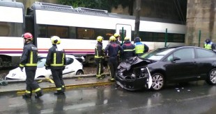 Sobre las cinco y media de la tarde de este miércoles se registró un aparatoso accidente de tráfico en el que se vieron involucrados dos vehículos y uno de ellos salió disparado hacia la vía del tren, en la carretera que una la zona de San Valentín (Mercadona) con Perlio (Establecimientos Aguilar). El conductor causante del accidente no resultó herido …
