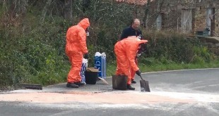 Fue necesario evacuar a los residentes de dos viviendas Sobre las cuatro de la tarde de este miércoles se levantaron las alarmas ante un vertido de fenol, un producto tóxico, procedente de un camión cisterna que desde Puertollano se dirigía a Forestal del Atlántico, en Mugardos. El suceso ocurrió en la carretera CP-3503, en el lugar de «O pedrón», de …